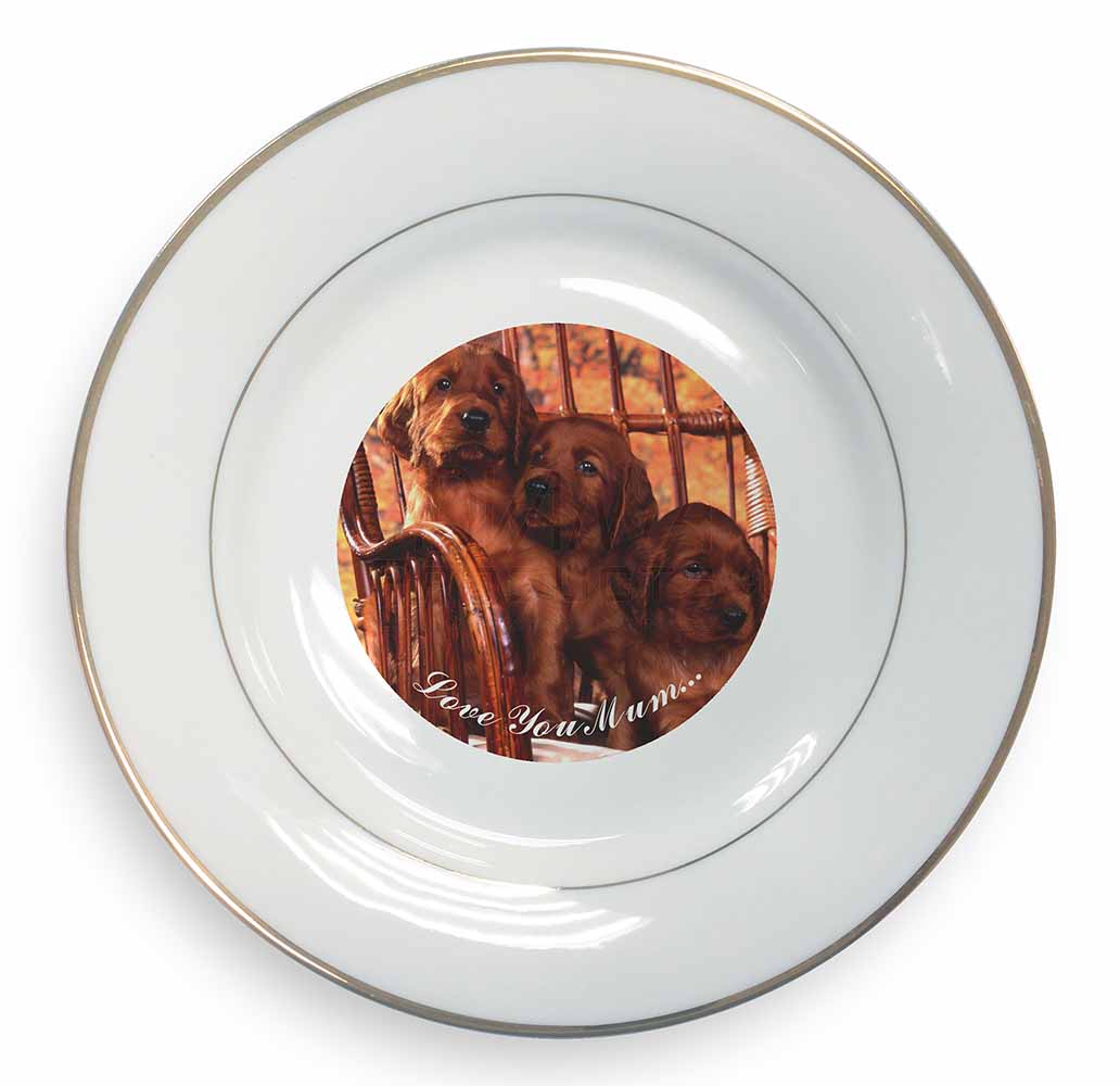 Design /Print: Three Gorgeous, Cute Irish Red Setter Puppies Sitting on a Rocking Chair with the Wording - 'Love You Mum'...