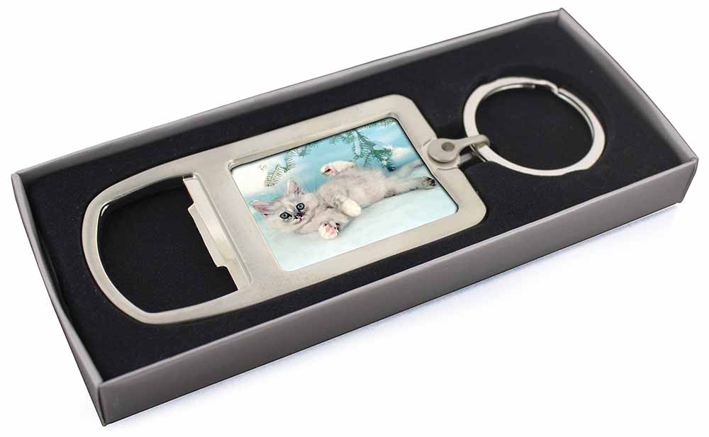 Tiffanie Kitten, Tiffany Cat Chrome Metal Bottle Opener Keyring in Box