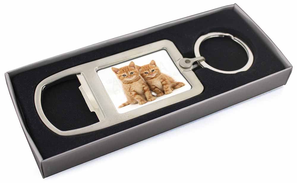 Ginger Kittens Chrome Metal Bottle Opener Keyring in Box