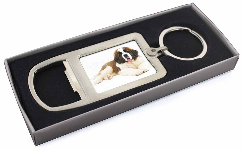 St Bernard Dog Chrome Metal Bottle Opener Keyring in Box