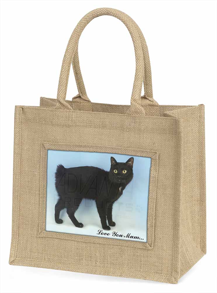 Design /Print: A Cute Black Japanese Bobtail Cat with the Wording 'Love You Mum'…