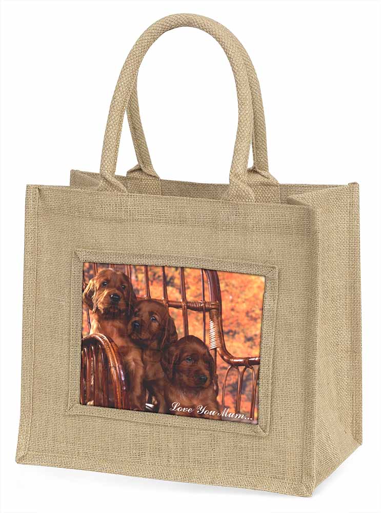 Design /Print: Three Gorgeous, Cute Irish Red Setter Puppies Sitting on a Rocking Chair with the Wording - 'Love You Mum'...