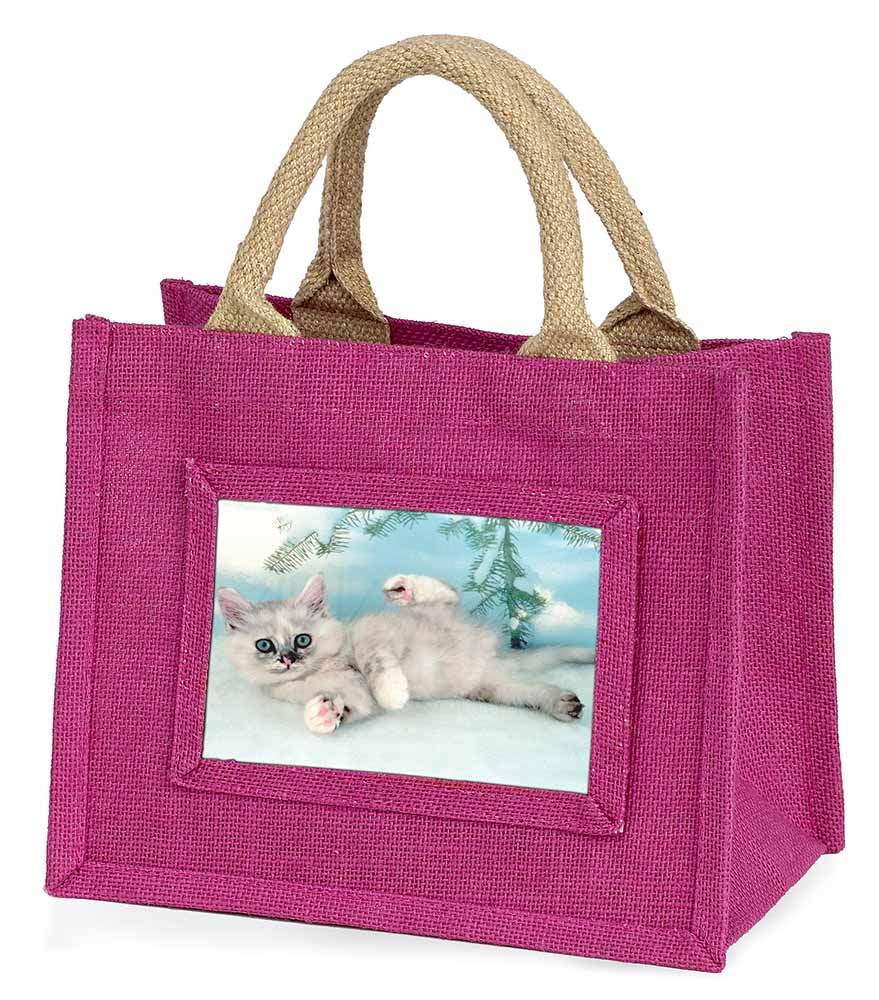 Tiffanie Kitten, Tiffany Cat Little Girls Small Pink Jute Shopping Bag