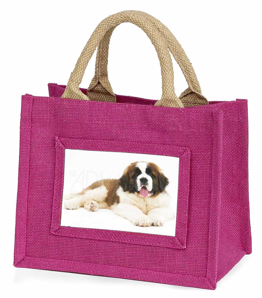 St Bernard Dog Little Girls Small Pink Jute Shopping Bag