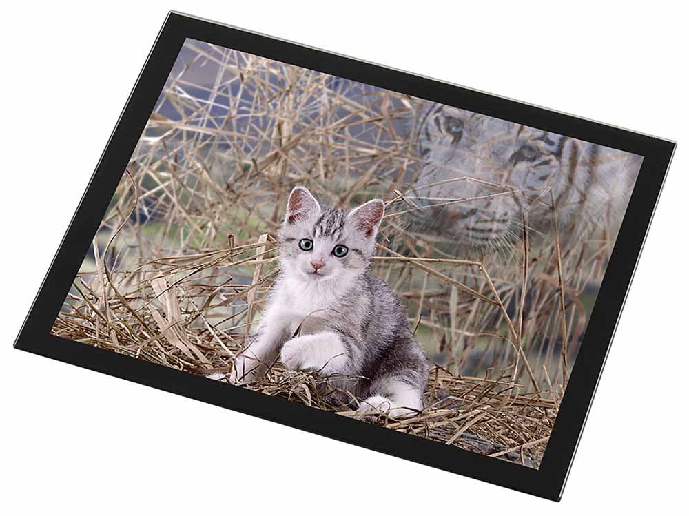 Kitten and White Tiger Watch Black Rim High Quality Glass Placemat
