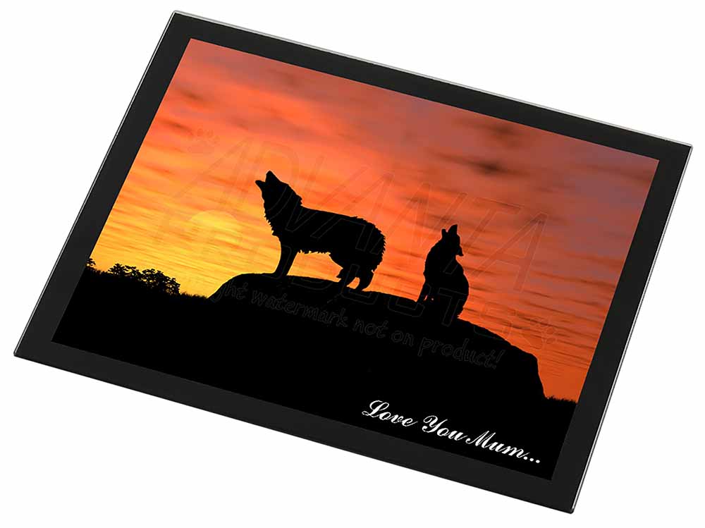 Design /Print: The Stunning Sight of Two Howling Wolves Silhouettes on a Rocky Ridge at Sunset with the Wording 'Love You Mum'...